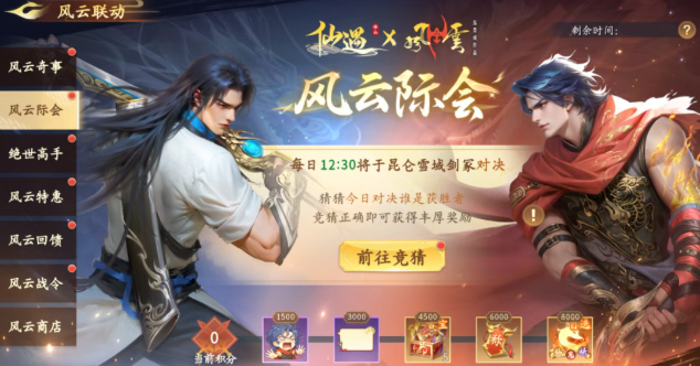 风云对决,竞猜有奖!步惊云和聂风每天将会开启一场对决,玩家可竞猜哪方获胜,竞猜成功将会获得奖励!活动开启后可前往支持的一方助威,助威可提升支持一方的招式伤害,最终环节血量更高的一方将有大概率获胜。