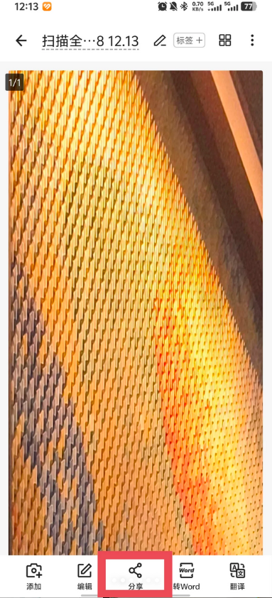 2.点击分享: 处理完成后,点击屏幕下方的 “分享” 按钮。