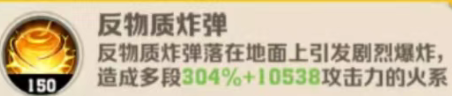 该技能的短板也较为突出,对火免疫的 BOSS 不仅无效,也无法触发各类增伤效果。综合来看,反物质炸弹在面对非火免敌人时能起到辅助增伤的作用,不过针对性较强,需要玩家根据具体关卡的敌人类型灵活选择是否使用。