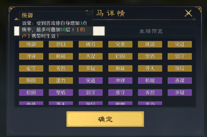 6.词条也是分为特定马匹专属和通用两种。其中特定马匹的专属词条,目前只有[统御]和[怒目]两个
