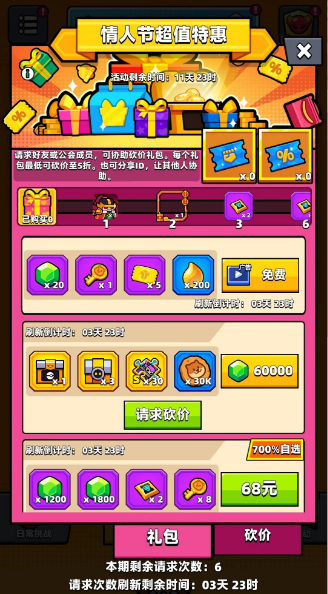 在零氪基础上,额外投入6000钻石,可解锁核心自选宝箱。