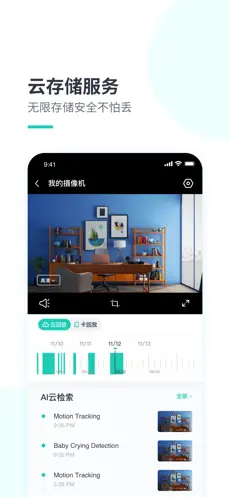 4.绑定摄像头后支持实时监控、云回看、异常告警。