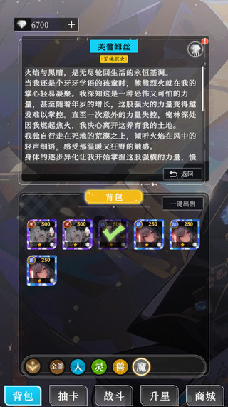 5、刚刚好像爆了一张SSR卡,我们去背包里看一下