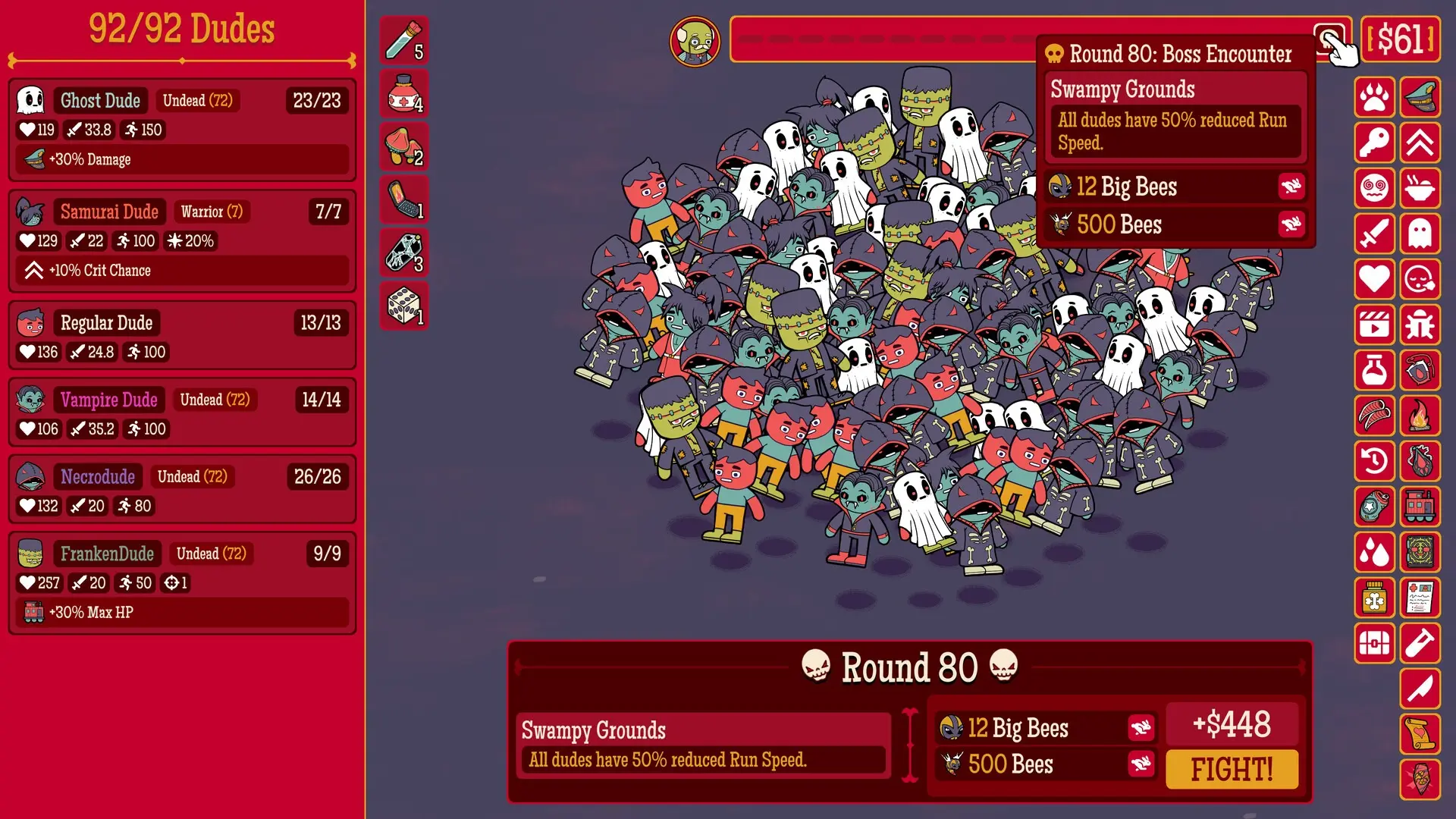 多少兄弟是由Butterscotch Shenanigans打造的一款肉鸽自走棋策略游戏,将策略与搞笑完美结合,玩家将在 "兄弟牧场" 招募并指挥一支由各种特色兄弟组成的军团,征战充满荒诞挑战的战场,挑选不同的兄弟作战,兄弟越多,战斗力越强,组建强大的强大的兄弟阵容击败各种强敌。