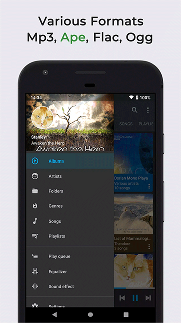10段均衡器和15个内置音乐风格。