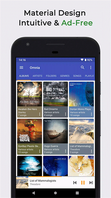 Omnia作为功能非常强大的手机音乐播放器平台,致力于给各位用户提供本地音乐管理与播放服务,支持多种音频格式,通过高分辨率输出引擎为大家带来绝佳的音质,满足所有音乐爱好者对音乐播放的需求,无论是离线收听还是创建歌单,Omnia都能让你享受前所未有的音乐魅力!